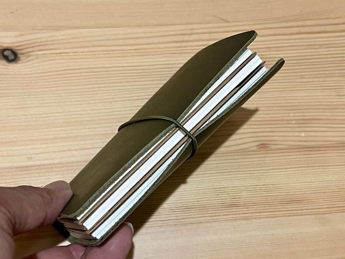 A5サイズの時にはあまり感じませんでしたが、今回は革の薄さと触り心地がちょっと気になりました。もしかして、こちらも個体差がある?