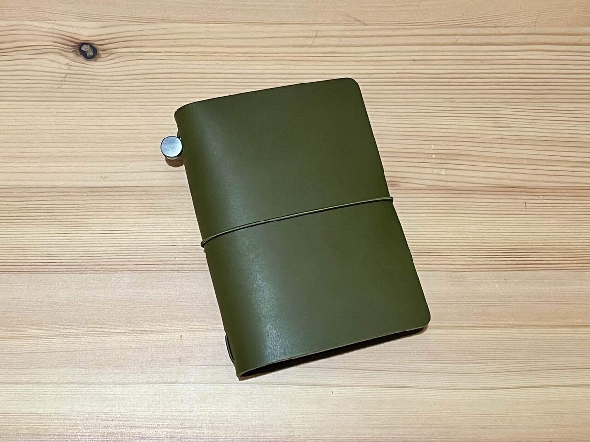 今持っているトラベラーズノートのパスポートサイズで全然事足りているのですが、前からトラベラーズノートのオリーブの色が気になっていました。